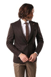 Product DetailBrownSlim FitBlazerFabric Mixture: 65% polyester 35% viscoseModels Information: Height: 189  Weight: 82  Shoulder: 98  Chest: 96  Hip: 94 Models Size: Jacket: 48