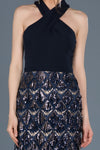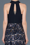 15783 Navy Blue Tassels Sequined Tulle Dress