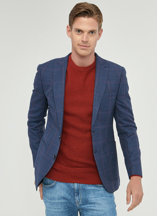 Product Detail Navy Blue25% Linen 50% Polyester 25% Viscose Slim Fit Half Lining Classic Model Wide Dovetail Collar 6 DropModel Information: Height: 1.88cm Weight: 80kg Product Size: 50