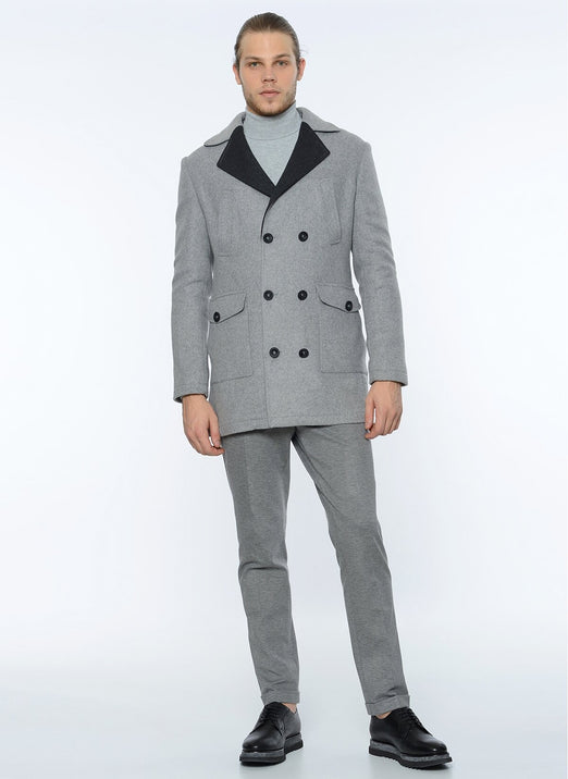 3880 Grey Double Breasted Wool Blend Coat