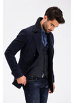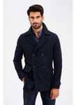 3948 Navy Jacket Collar Patterned Coat