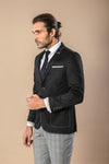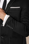 Product Detail Double buttons, pointed collar, 6 drop, double vents Black 62% polyester 35% viscose 3% elastane Slimfit Jacket Height: 189 Weight: 82 Shoulder: 98 Chest: 96 Hip: 94