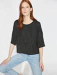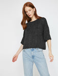 Product Detail Crew NeckShort SleeveCrew Neck T-Shirt87% Polyamide 7% Metal 6% Elastane Model Measurements: Height: 177 cm Breast: 86 Waist: 60 Hip: 88 Model Size: S