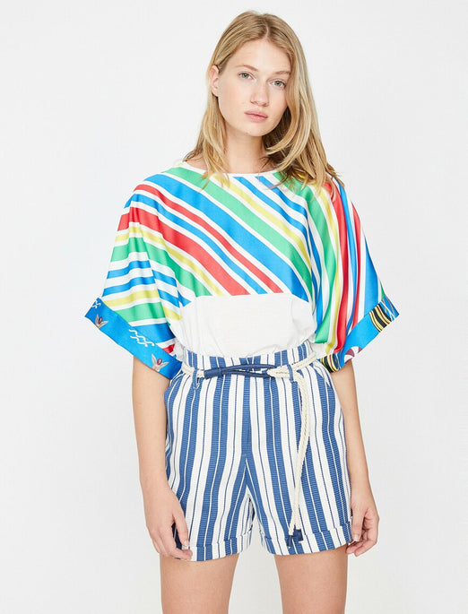 Product Detail Short SleeveStriped Crew Neck T-Shirt 35% Viscose 65% Polyester Model Measurements: Height: 176 cm Breast: 90 Waist: 60 Hip: 90 Model Size: S