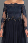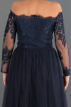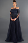 9287 Navy Blue Off-Shoulder Lace Tulle Evening Dress